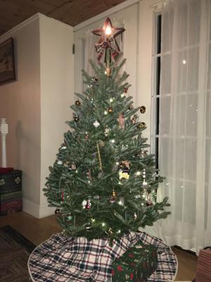 Smaller than a traditional tree it s great on tabletop or sideboard.