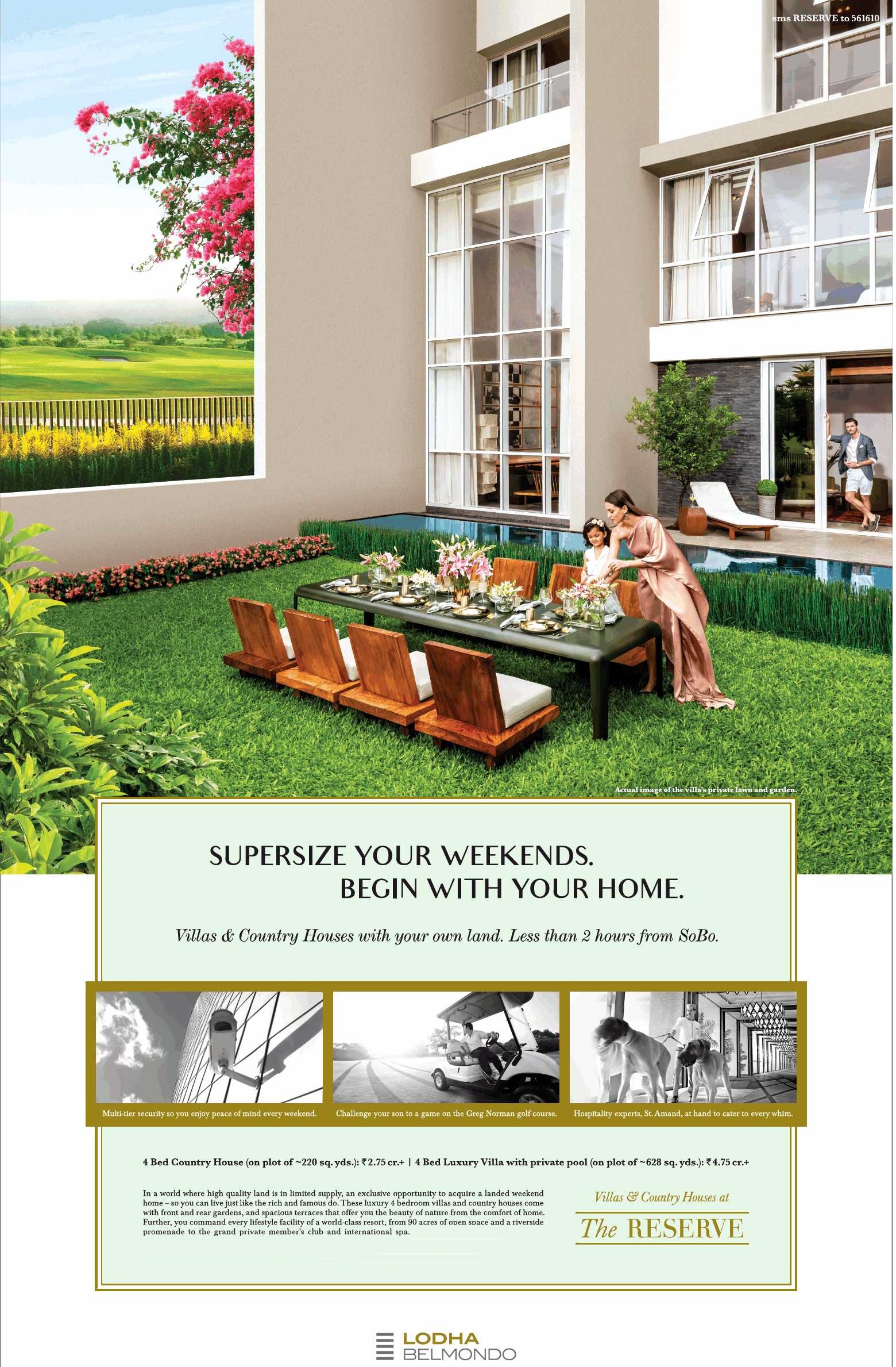 The reserve at lodha belmondo located in pune offers excellent and varied floor plans with varied pricing range for country houses and villas.